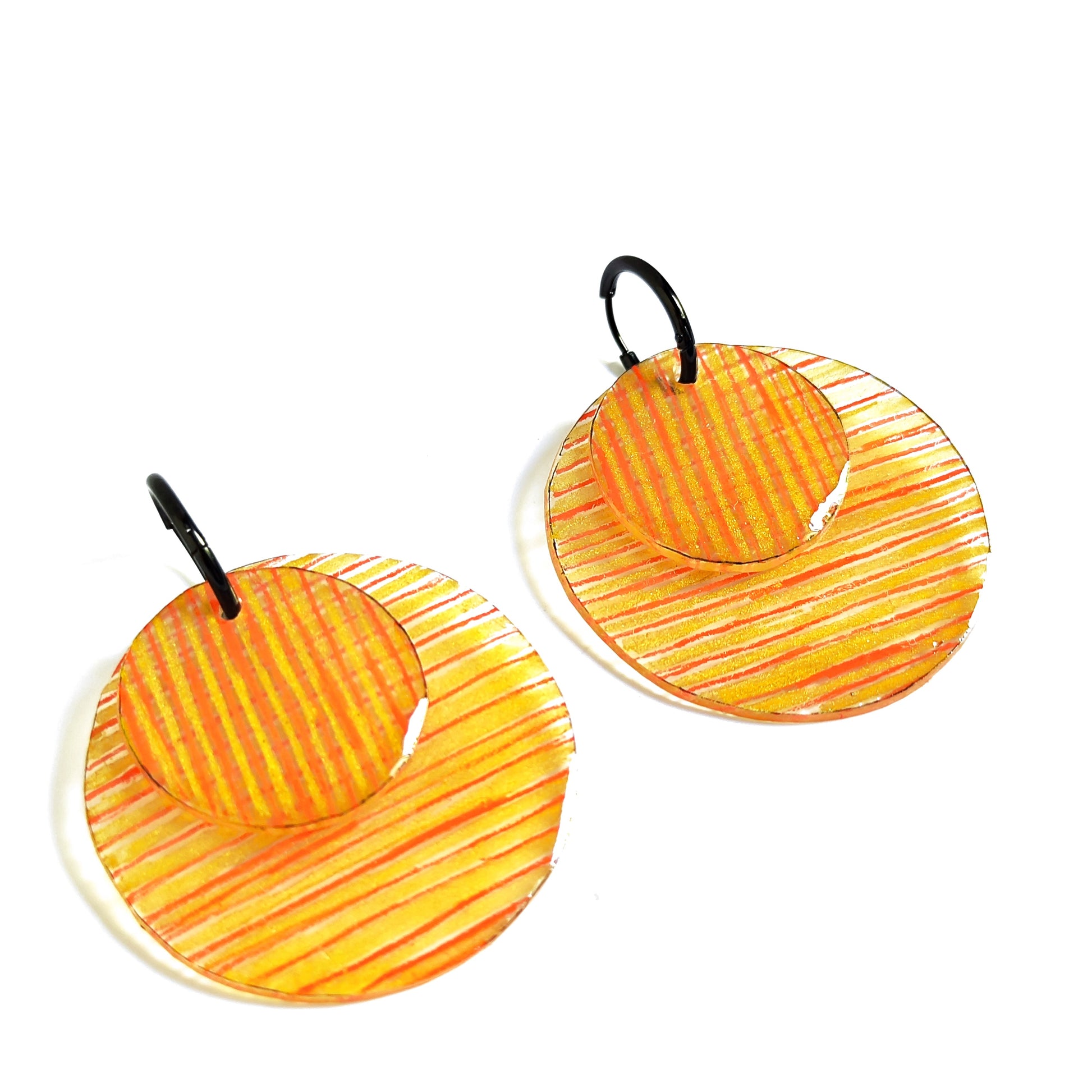 Con este modelo tienes tres pendientes en uno. Puedes lucirlos con las dos piezas, solo con una, la grande o la pequeña, o de forma asimétrica, en una orejita la pieza grande y la pequeña en la otra.