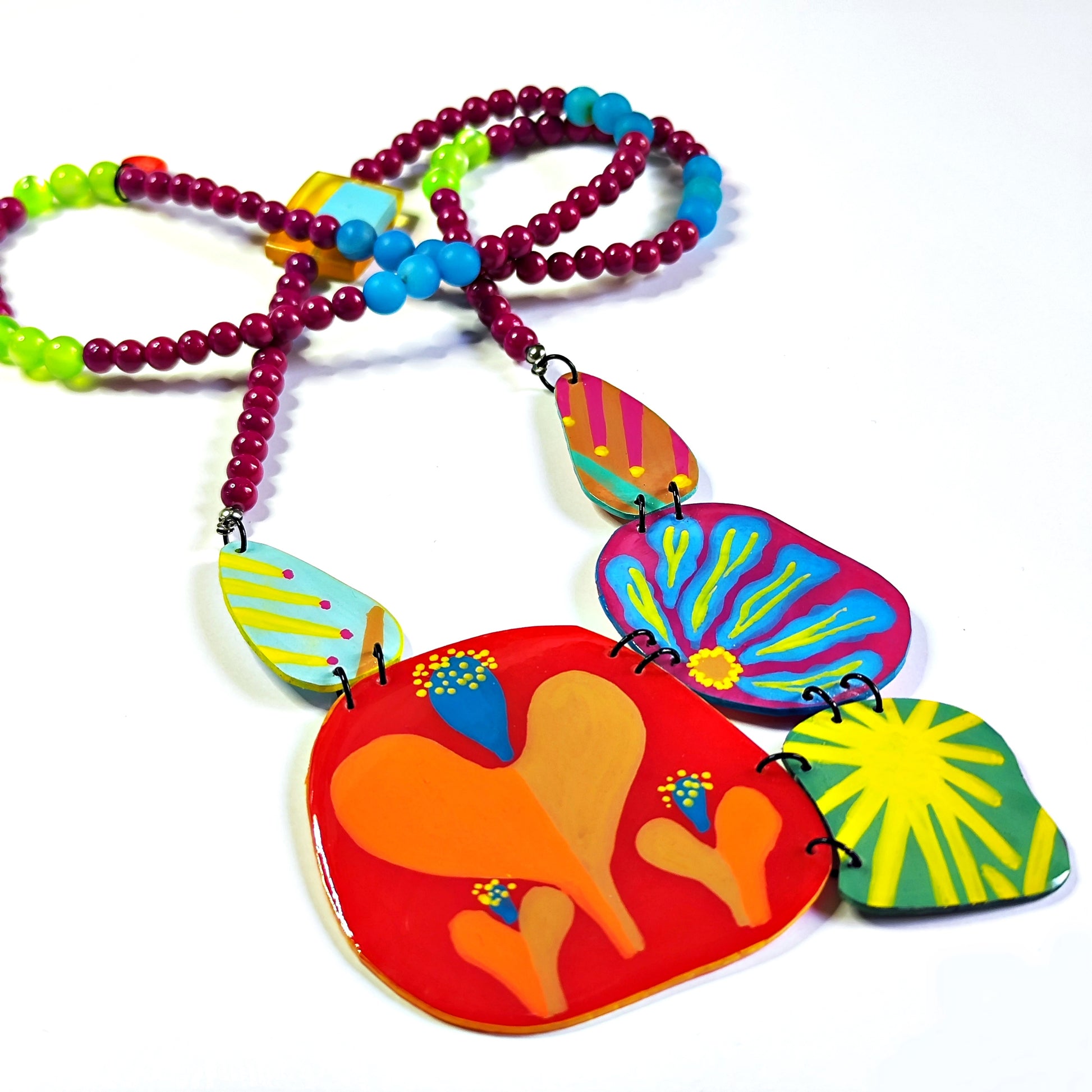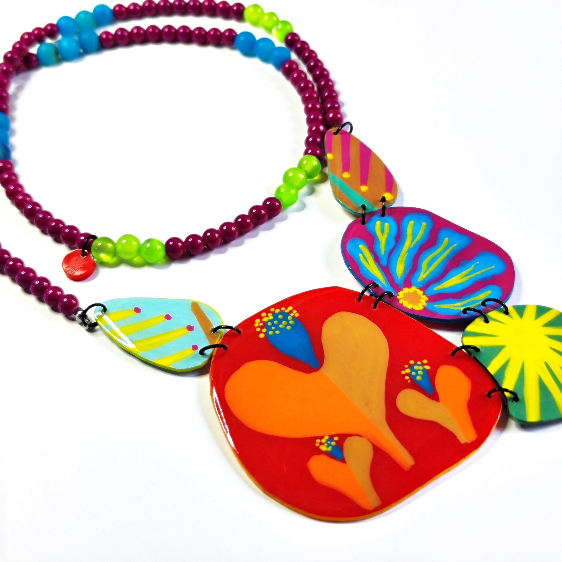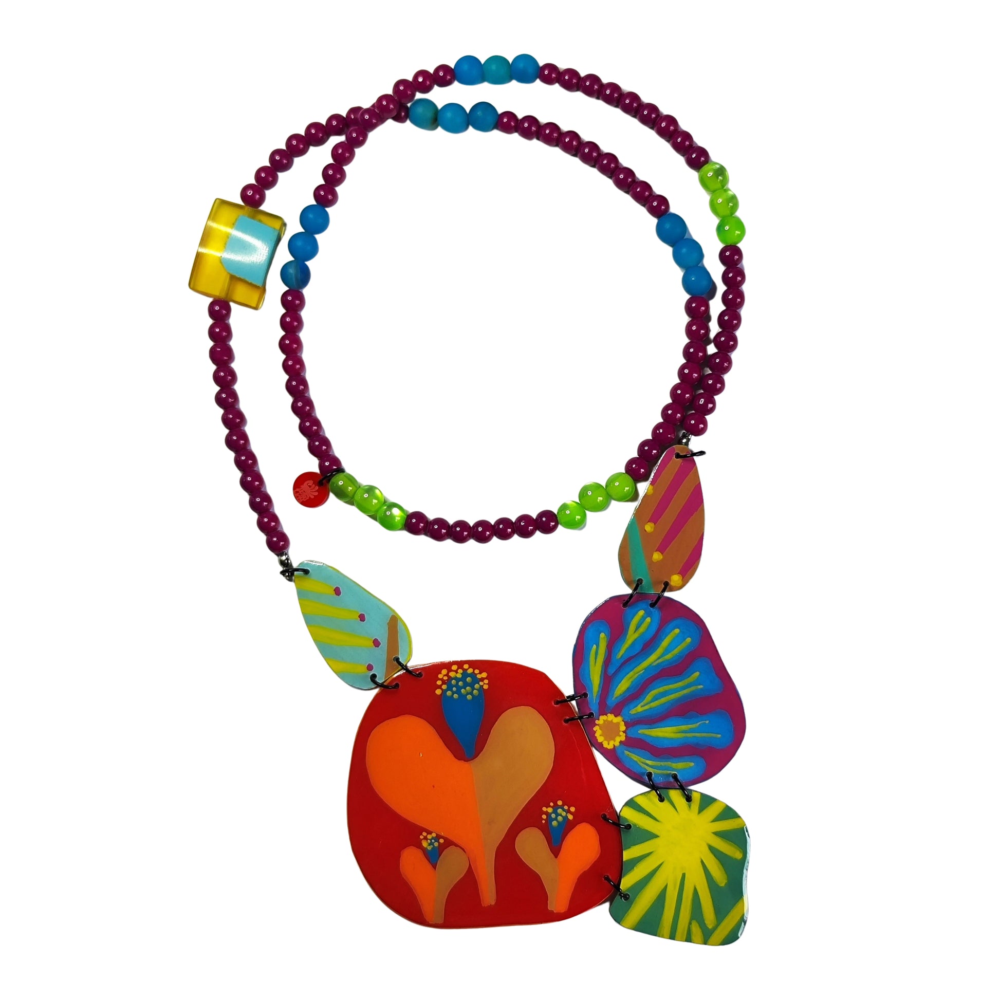 Una pieza de joyería editorial que transforma lo cotidiano en arte. El collar GLIKÓ combina geometría contemporánea con el carácter vibrante del acrílico, creando una declaración de estilo que habla por sí sola.