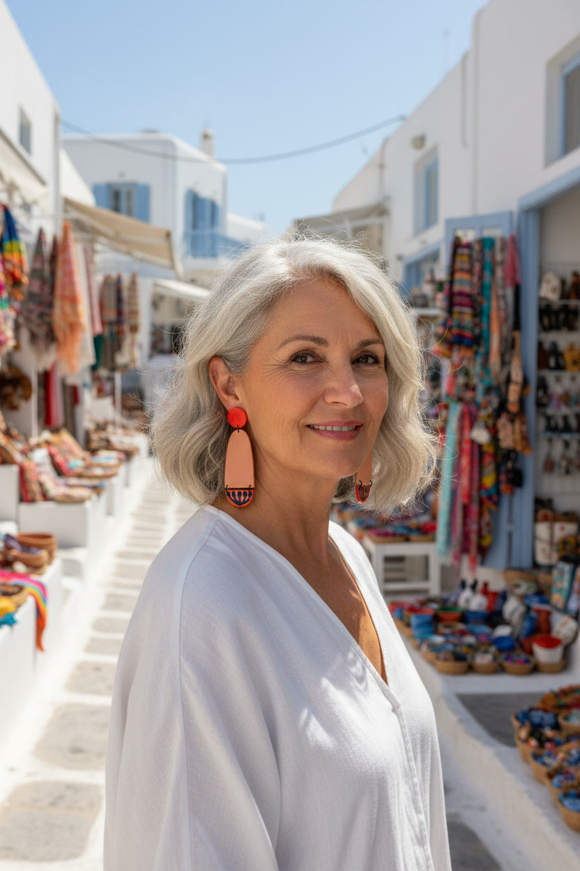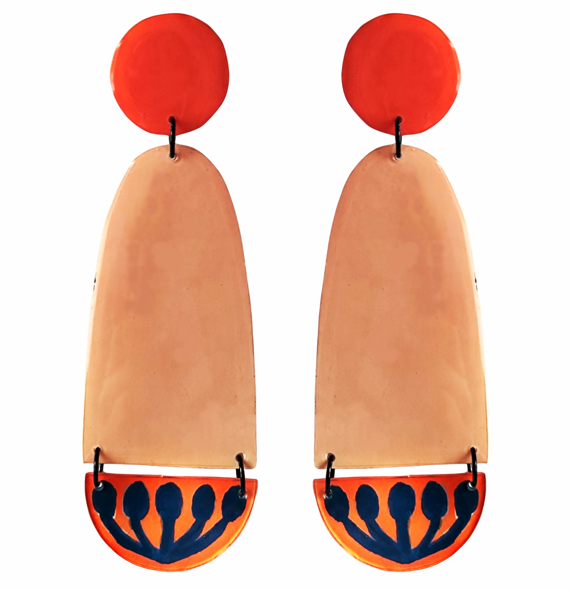 Pendientes geométricos VOLAX en vibrantes tonos naranja, salmón y azul